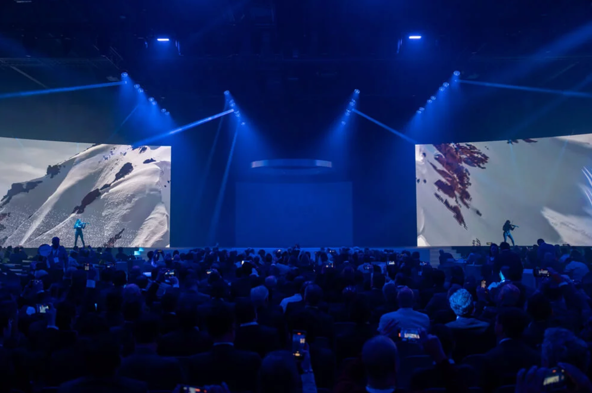 Our team's key tasks for this event was to create the opening moment, which involved animating 3D light trails that would dance from screen to screen, in time to a live recorded performance.